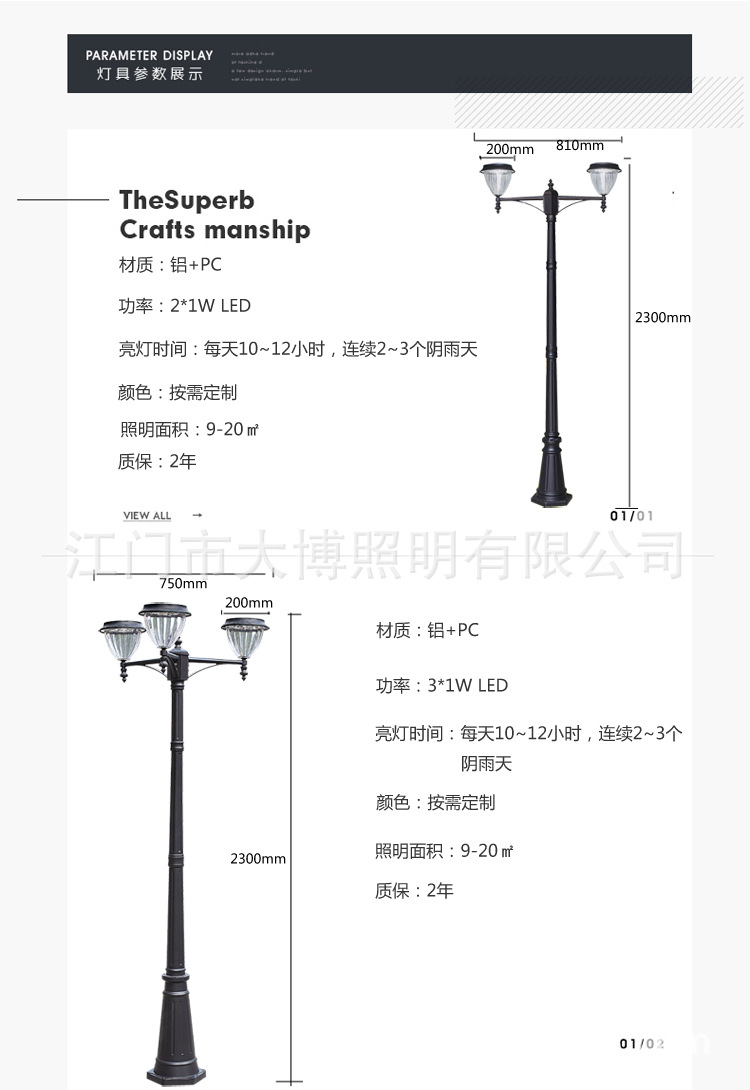 新款特色節能光伏太陽能庭院燈戶外防水鋁制歐式LED景觀燈